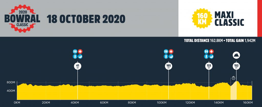 The new and improved 160km Maxi course will take riders through the rolling hills of Bowral, Berrima, Exeter, Robertson and Kangaloon. Come prepared. During the ride around the beautiful Southern Highlands riders will face a variety of rolling hills, short steep climbs, and beautiful descents.