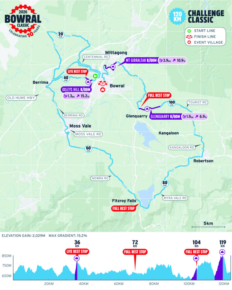 Conquer the Southern highlands on the 120km Challenge Classic – a stunning ride through Bowral, Berrima, Exeter, Bundanoon and Robertson.