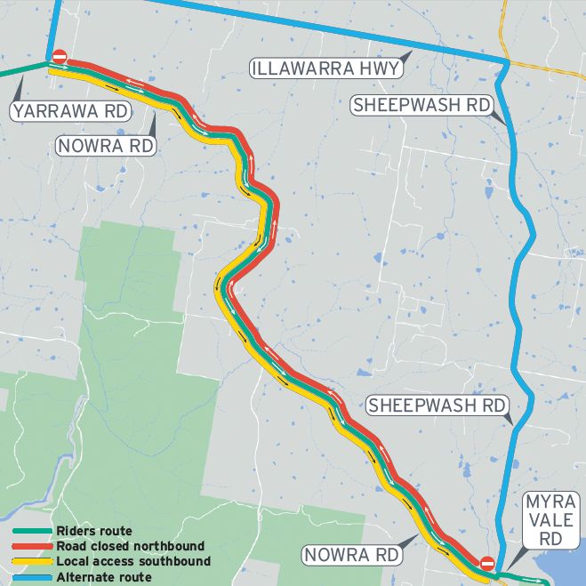 - Ellsmore Rd, Bundanoon will be closed to Northbound Traffic between Blue Gum Rd and Sallys Corner Rd from 7:30am – 11:00am. Use Bundanoon Rd and Middle Rd during this time.